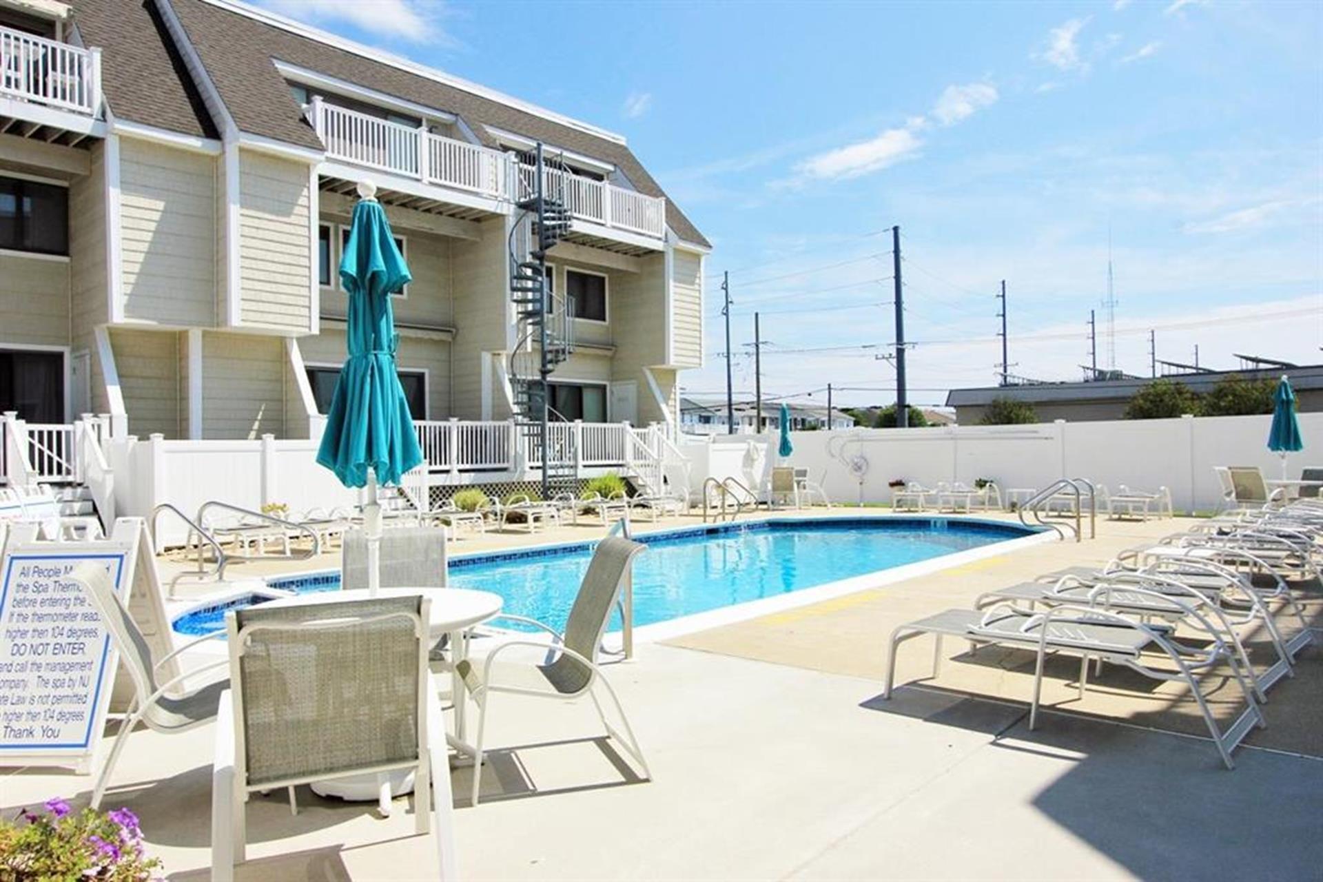EVER POPULAR HERON COVE CONDOMINIUM WITH A POOL!! This two-story townhome has everything that your family is searching for, from ample size bedrooms, wide open living space, a nice size deck, a pool and a convenient Park-n-Walk location that is just over 2 blocks from the beach!! This unit has a 2nd Floor entrance and spans the 2nd & 3rd Floor of the building. The 1st level of living offers an exceptionally large Master Bedroom (with King bed) and attached private bathroom. The deck off the bedroom is the perfect place to enjoy your morning coffee or just relax and finally read that new book! At the top of the stairs, the 2nd floor of living immediately opens-up to a Great Room, where the entire family can entertain and enjoy prepping in the kitchen, eating at the Dining table, or just relax on the couch and stream TV. Owner offers YOUTUBE TV (no Comcast). The kitchen boasts plenty of counter space, stainless steel appliances, tiled backsplash and counter seating for two. A sliding door provides convenient access to the bay view deck off the Living Area! In the rear of this floor, you ll find two bedrooms (one with a Queen size bed, the other with a Twin) and a generous size laundry closet. The central location is only a short walk from the beach, all sorts of restaurants and beach bars, the bayside promenade overlooking the Intra Coastal Waterway, Public Recreation Fields, Basketball & Tennis courts & a playground (80th to 82nd Street). There is off street parking for one vehicle.