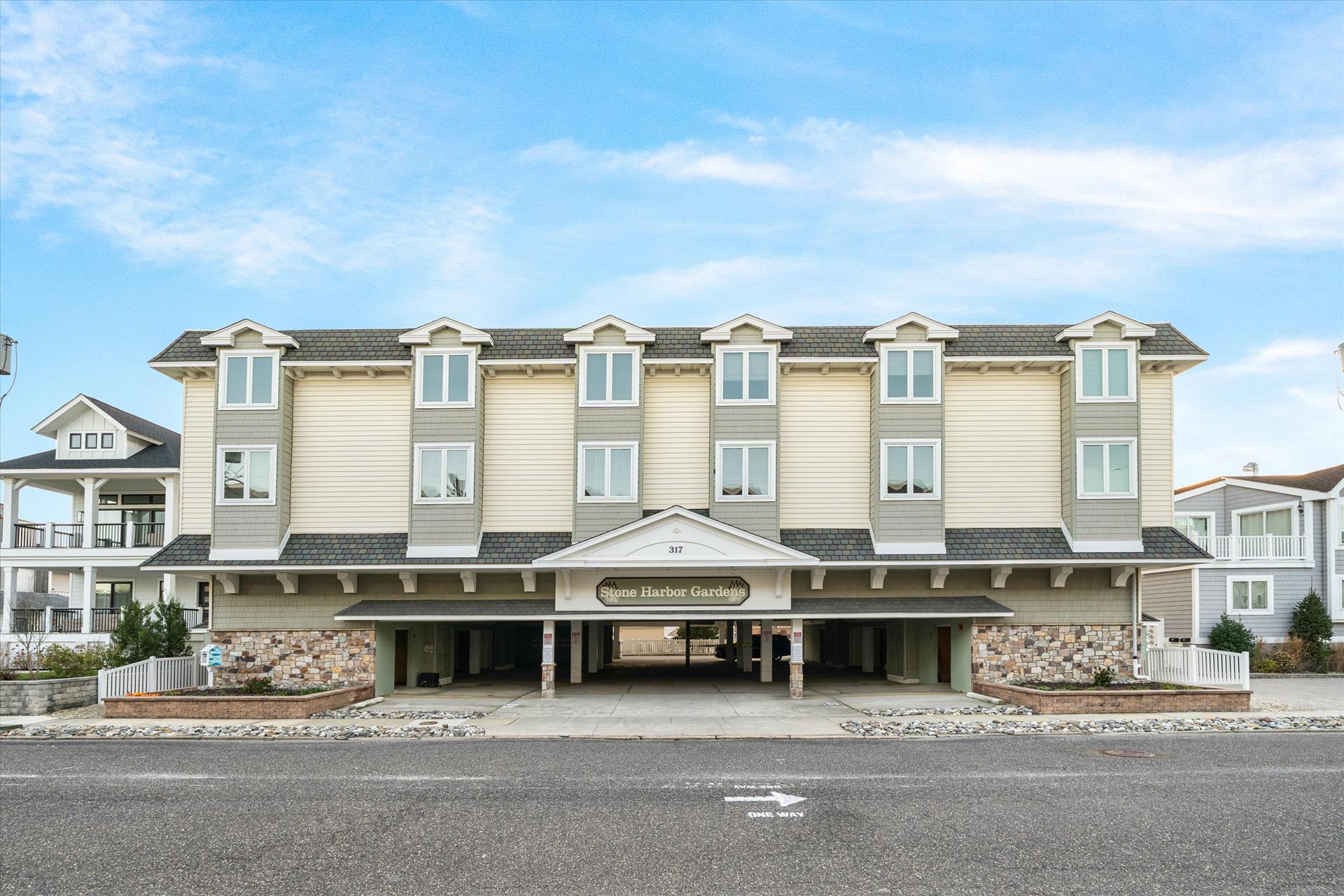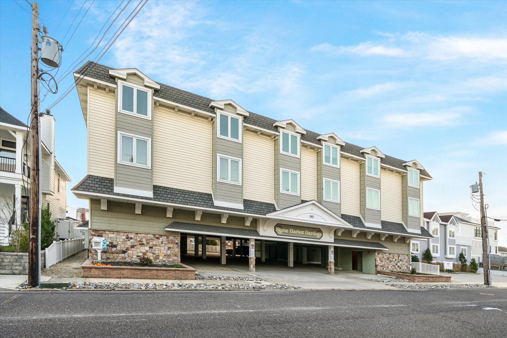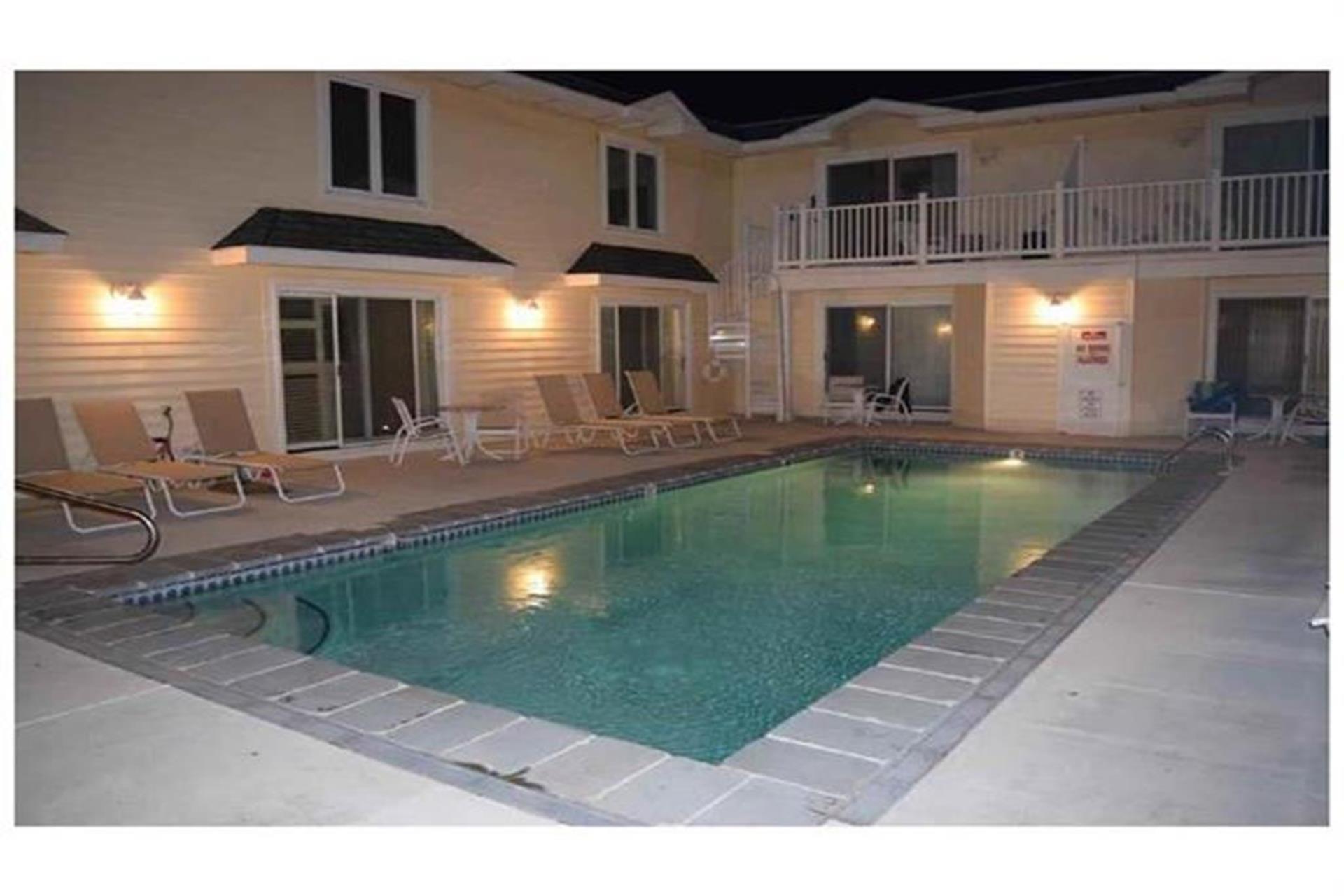 Stone Harbor Gardens Unit 4. This 3 bedroom 2 bath condo with a pool provides everything you need for a great week at the beach. Convenient location puts you within walking distance of the beach and all the attractions at 80th Street as well as the 96th Street shopping district. The condo features a bedroom on the first floor. The main living area and kitchen on the second floor which opens to the shared pool and courtyard. The third floor features and additional 2 bedrooms with shared hall bath. The unit features 1 off street parking space and the owner provides 6 beach tags and 4 beach chairs for your convenience. Call us today to reserve your week. Owner will entertain off season and weekend rentals with a 2 night minimum.